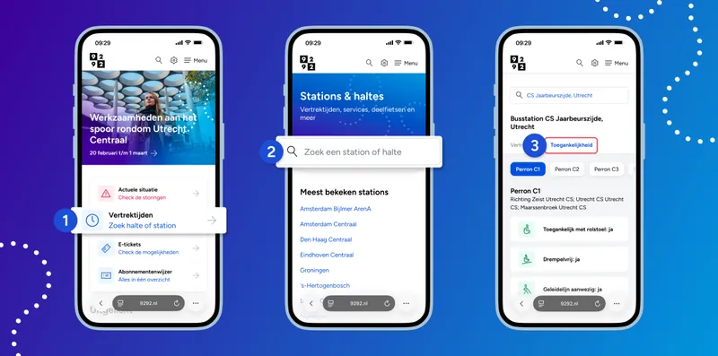 Ben je benieuwd naar de toegankelijkheid van de haltes waar je tijdens jouw reis langs komt? Op de website van 9292 zie je per halte en volgende gegevens: